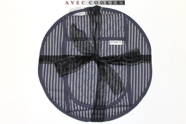 Sterck Grey Striped Lid Covers & Oven Glove Set For Aga