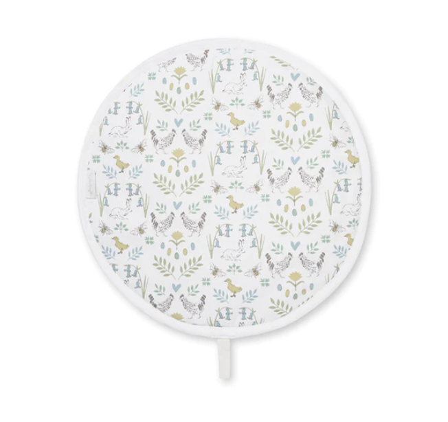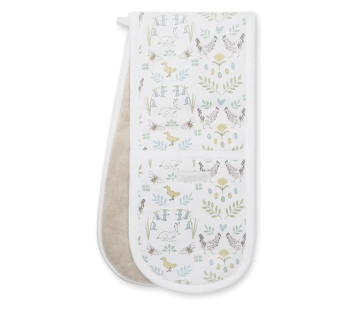 These practical and stylish circular cotton hob covers will add a fresh spring look to your kitchen with its fun Spring Chicken print. Featuring Sophie’s playful farmyard motif on a crisp white background with terry towelling base, they are perfect for keeping hob and cooker tops clean and scratch-free.