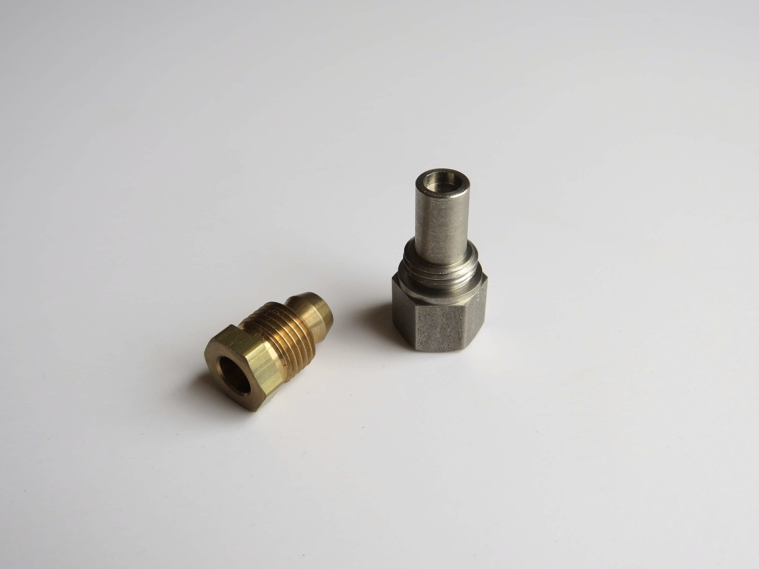 Made from stainless steel, complete with nut and olive